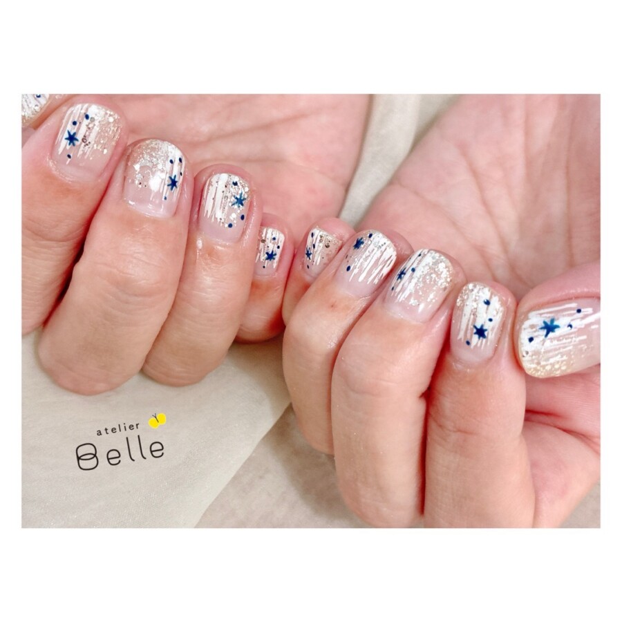 【冬のニュアンスネイル】おすすめ!クリアベースにキラキラ輝く星がキュート