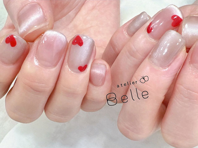 【手描きハートネイル】可愛い!マグネットネイルに乗せたハートアートに...