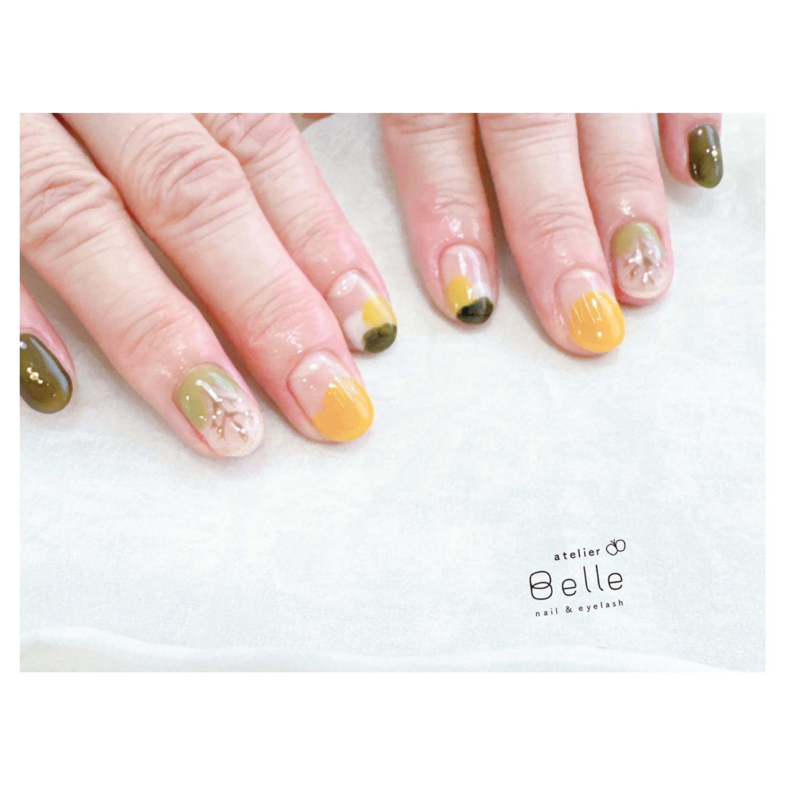 【秋ネイル】季節を先取り!マスタードカラーにカーキが新鮮
