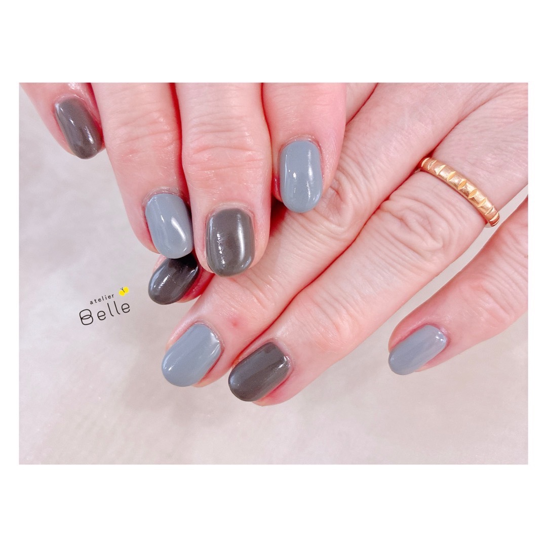 今回は、グレーとブラウンのネイルカラーを組み合わせた、