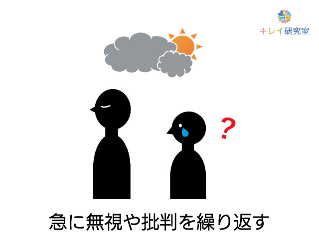関係が安定し始めると、相手はあなたに突然冷たくなり、批判や無視を繰り返します。