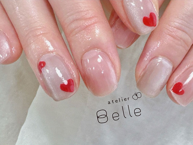 ちょこんと乗せたハートがラブリー!キュートな万能デザインネイルで決まり