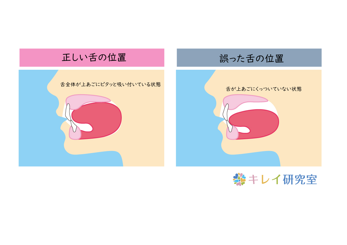 本来、舌は「上顎」に軽く吸い付いているのが正しい状態です。